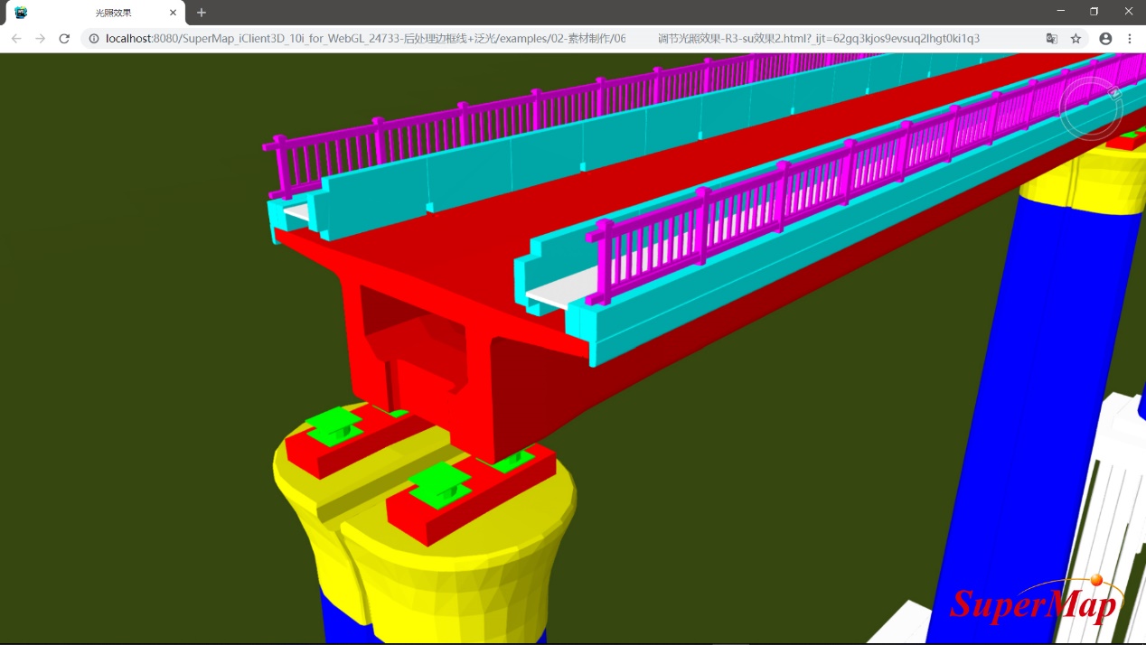 //添加光源 //东南45方向 //光源的倾角比较平,使得路面与桥墩的对比度比较高。 var position1 = new SuperMap3D.Cartesian3.fromDegrees(xxx,yyy, 445); var targetPosition1 = new SuperMap3D.Cartesian3.fromDegrees(xxz, yyz,430); var dirLightOptions = { targetPosition: targetPosition1, color: new SuperMap3D.Color(0.8, 0.8, 0.8, 1), intensity: 1 }; directionalLight_1 = new SuperMap3D.DirectionalLight(position1, dirLightOptions); scene.addLightSource(directionalLight_1);