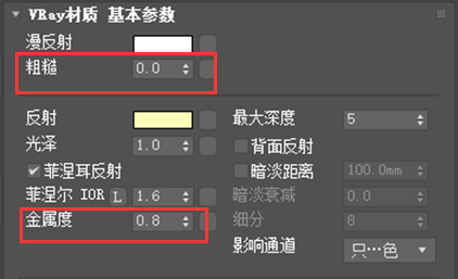 0.8,其余参数保持不变。粗糙度的值等于0的时候,会没有PBR的效果,所以需要设置大于0,这里设置为0.01。