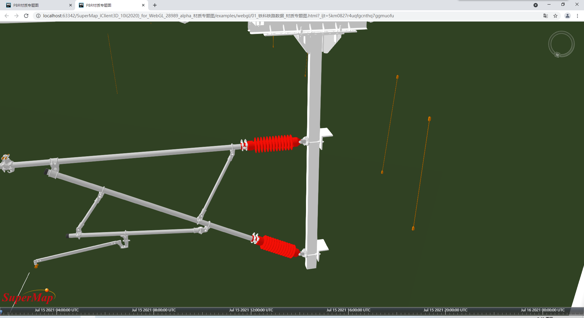 例如下图中的数据,只有一个图层,红色的绝缘子为陶瓷,橙黄色的吊弦为黄铜,其余的对象为铝材质。