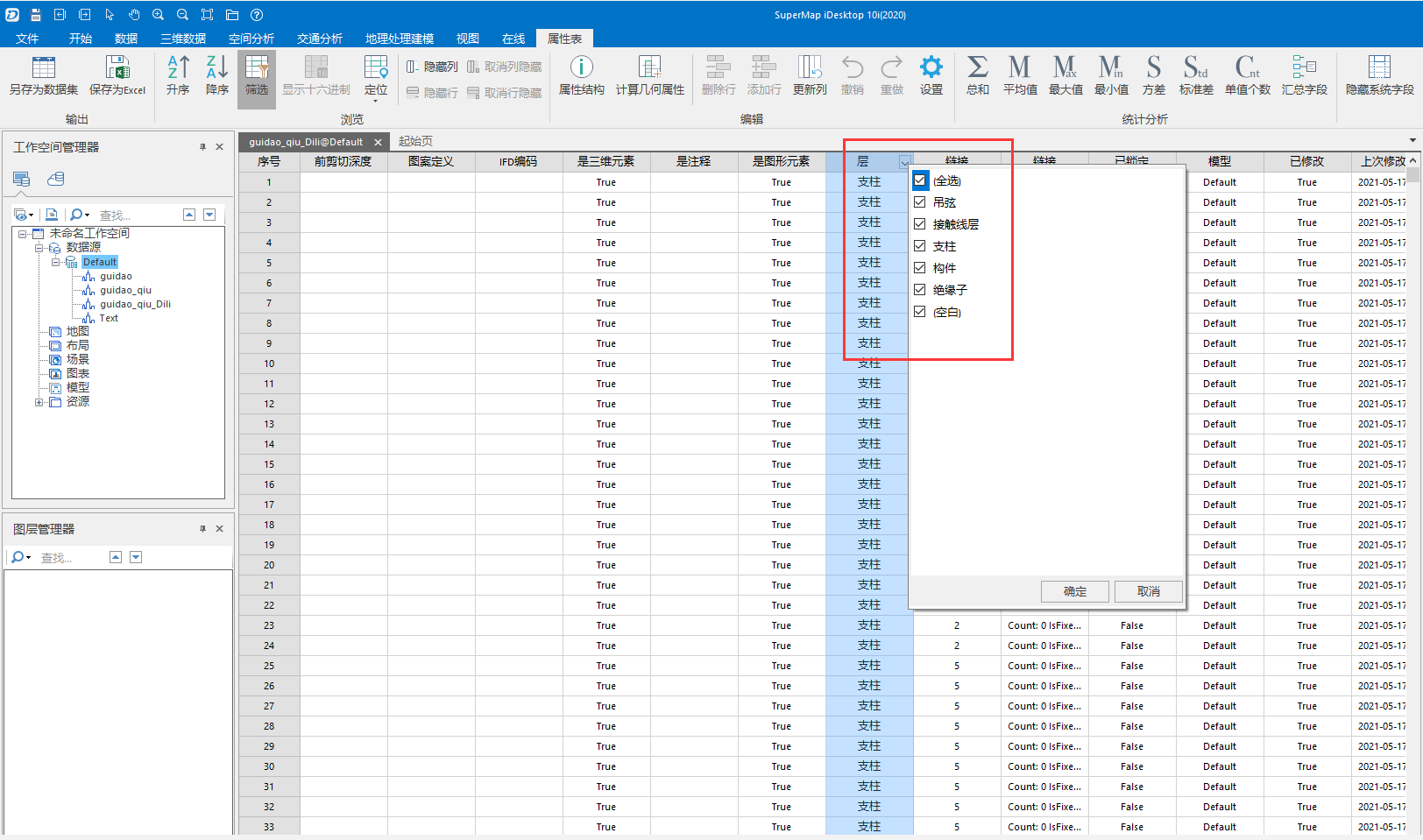 图层的划分可以在3ds Max导出的时候分开导出,也可以导出之后,在SuperMap iDesktopX中根据属性拆分。